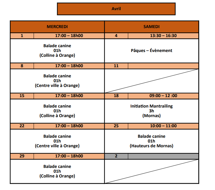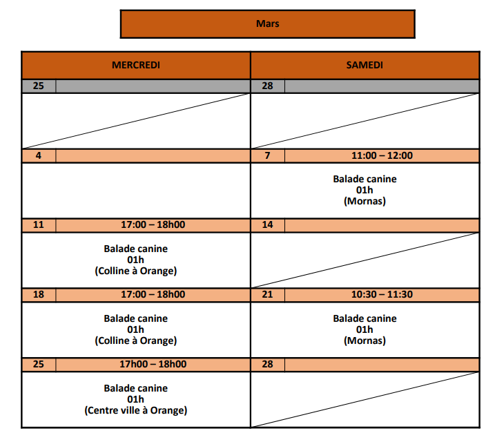 - Balade canine (2h) : 2 cases